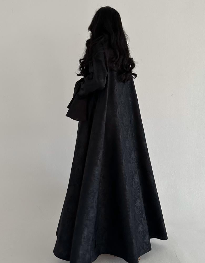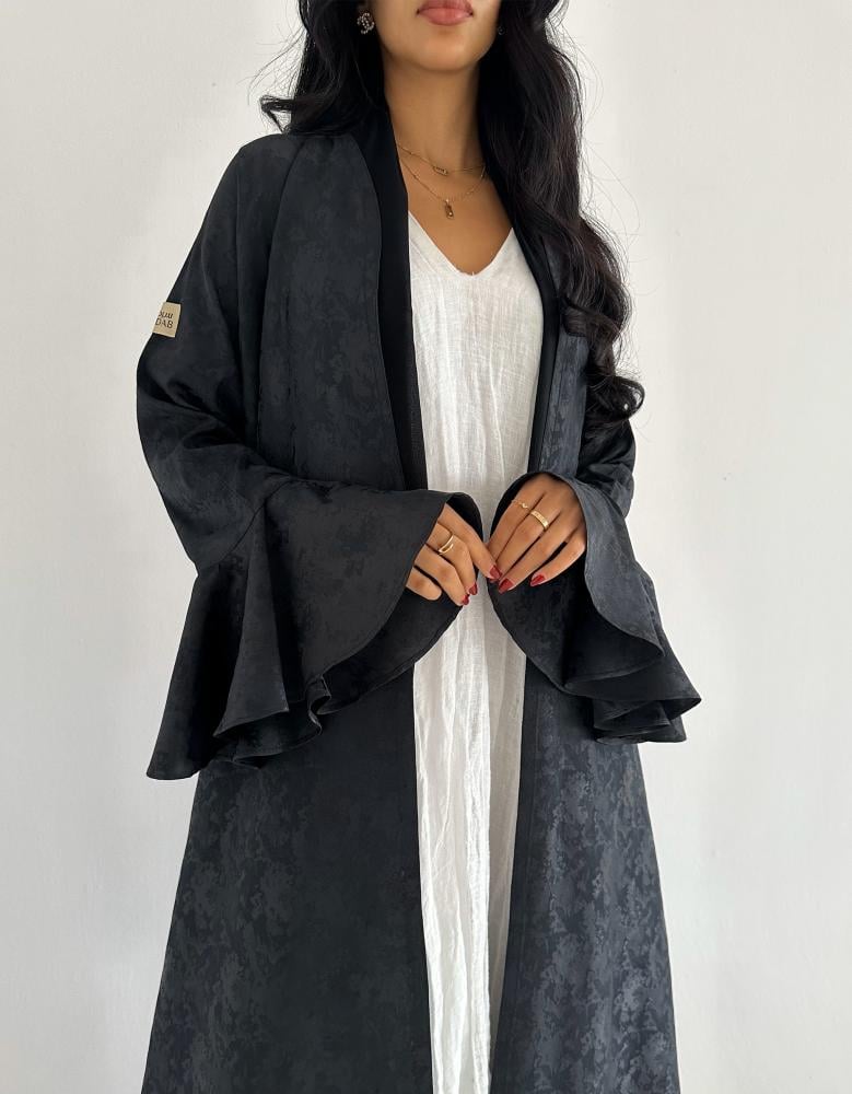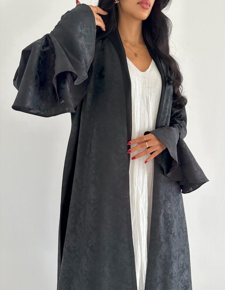 عباية أنيقة مصنوعة من قماش حرير جاكار الفاخر، بتصميم كلوش ينساب بنعومة ليوفر إطلالة راقية ومريحة. مثالية للعمل، المناسبات الرسمية، أو الاجتماعات، وتجمع بين الاحتشام والفخامة