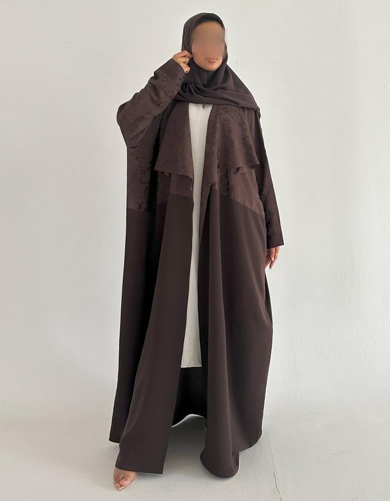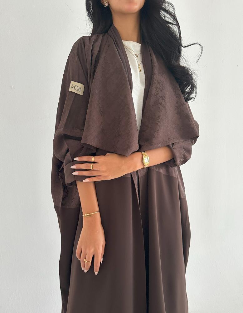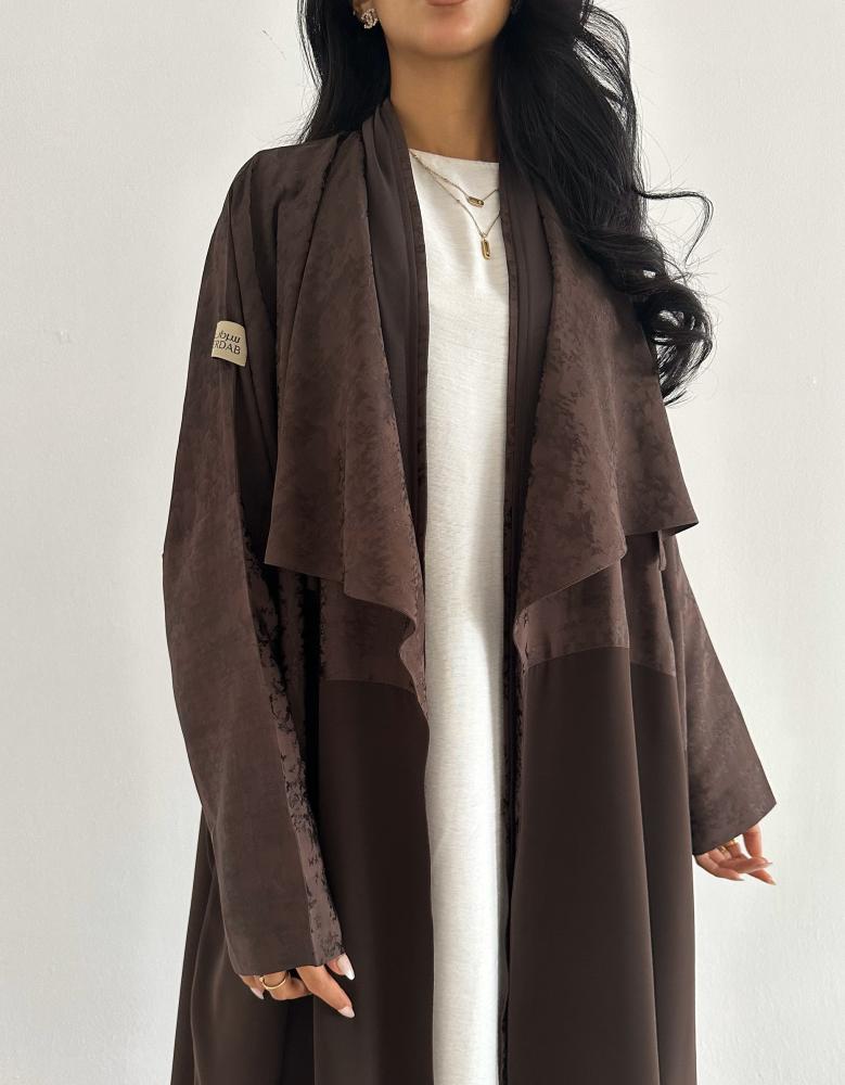 4. لمسات من الجاكار: توفر قماش الجاكار المنقوش تفاصيل مميزة على العباية، تضيف جمالاً ورقياً فريداً إلى الإطلالة