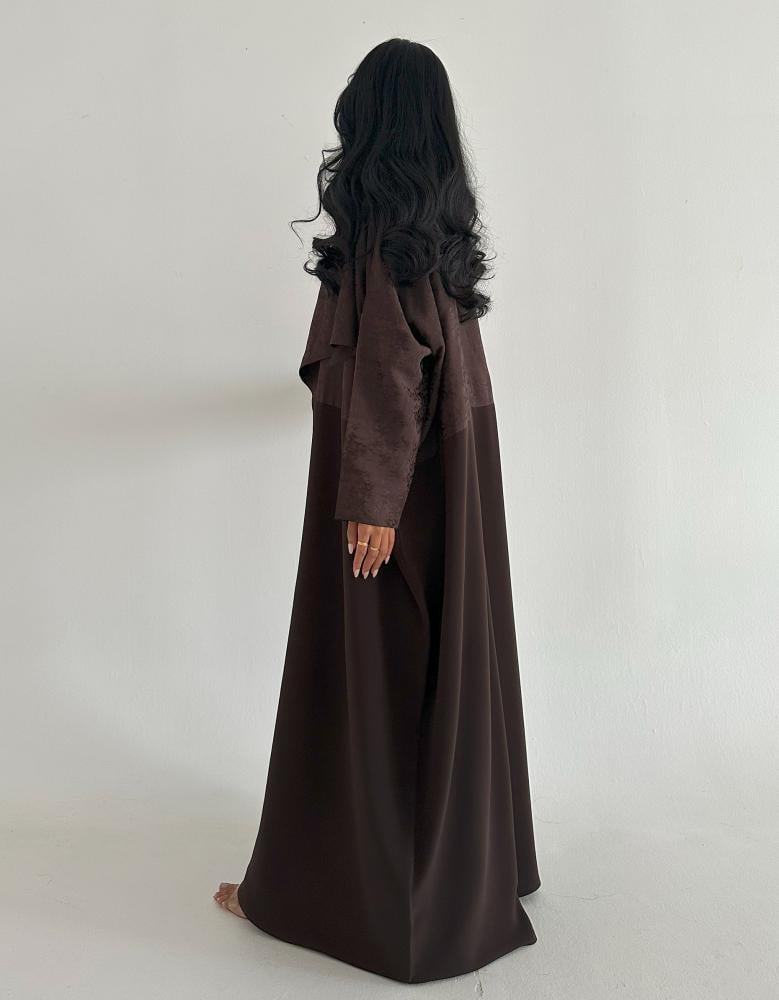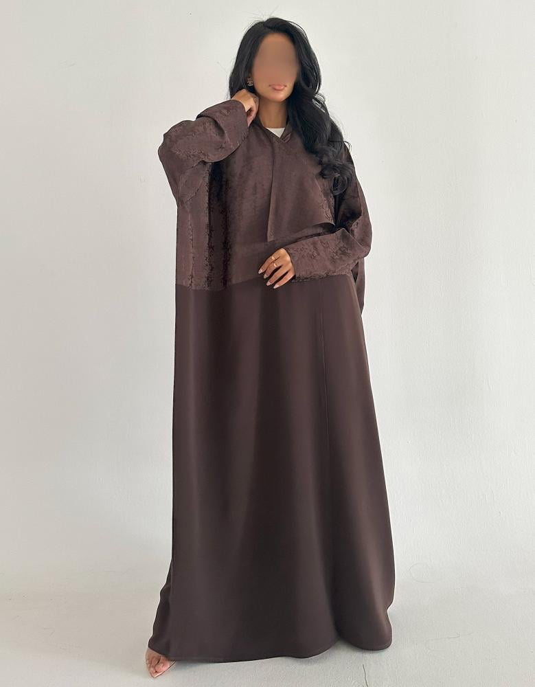 1. خامة كريب وجاكار عالية الجودة: الكريب يتميز بخفة وراحة مثالية، بينما يضفي الجاكار لمسة من الفخامة والقيمة إلى العباية.