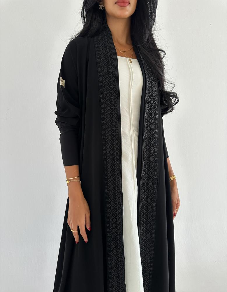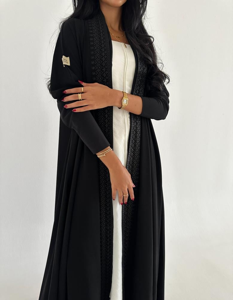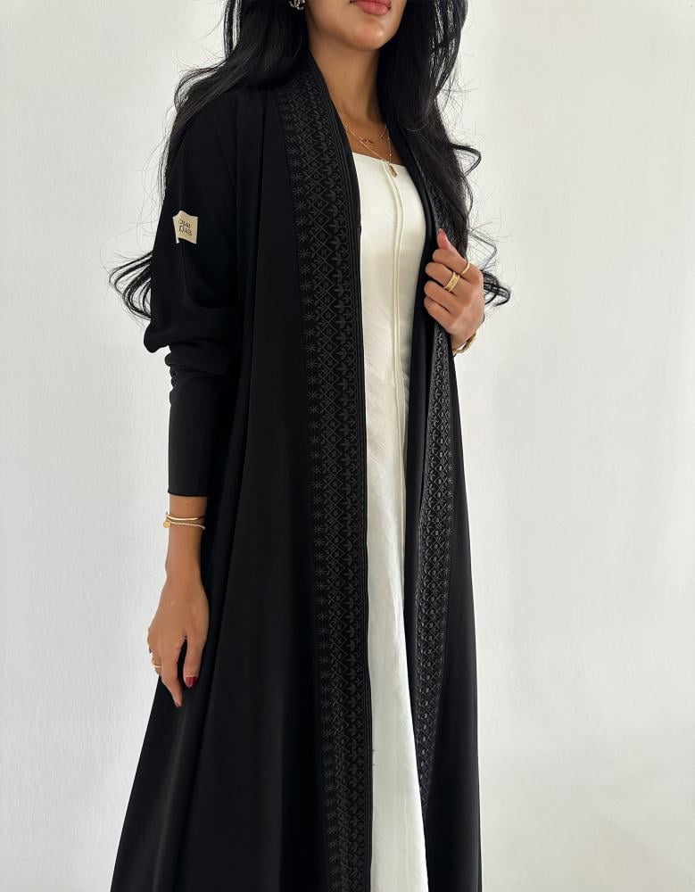 تطريز دقيق بلون العباية لإطلالة راقية وذوق رفيع، مثالي للمناسبات اليومية والرسمية.
