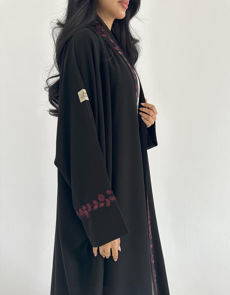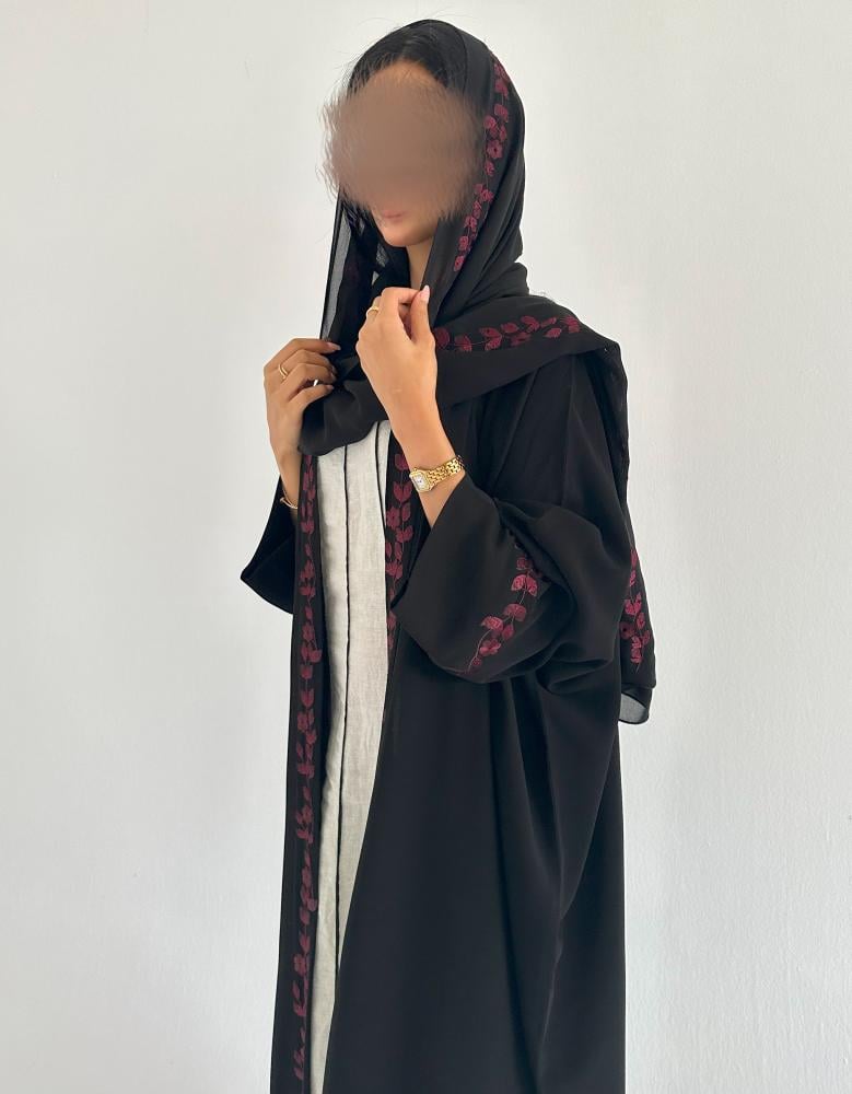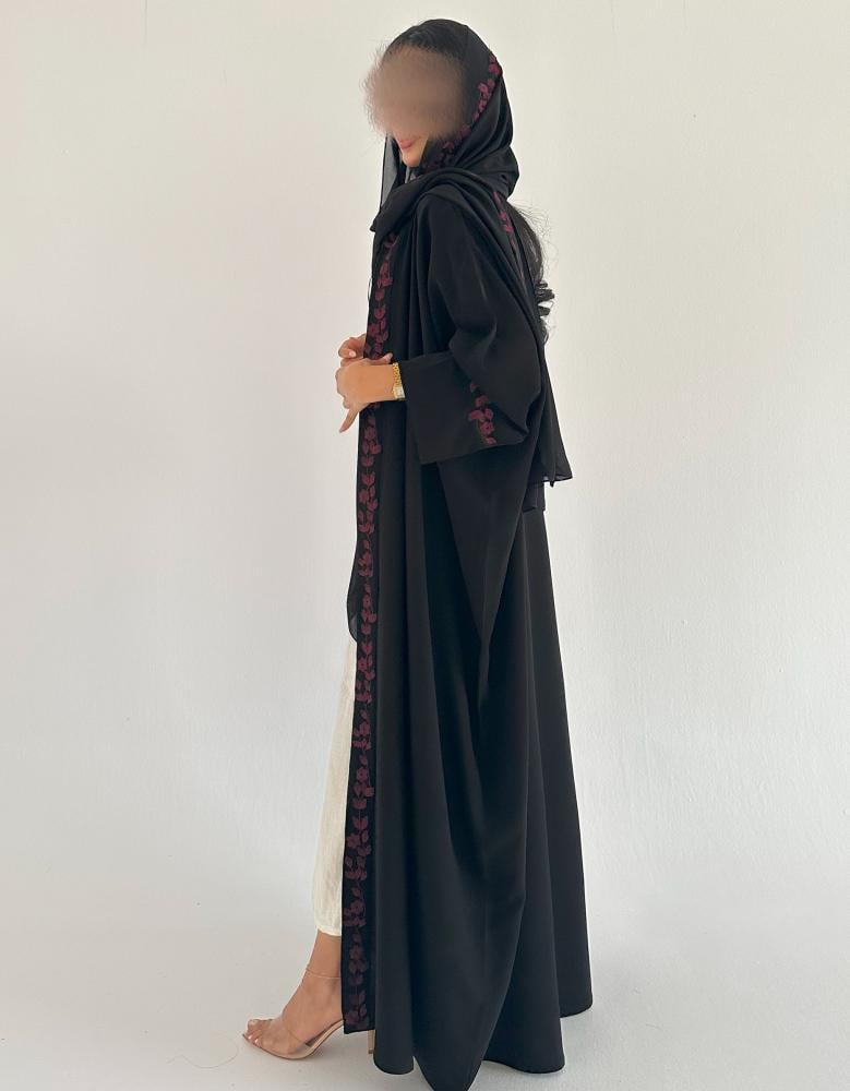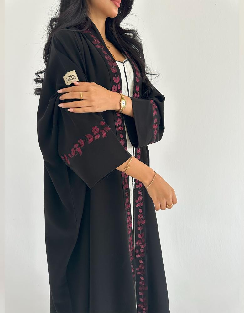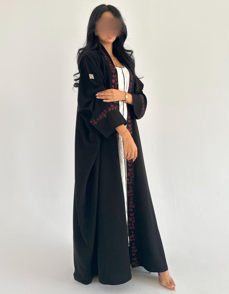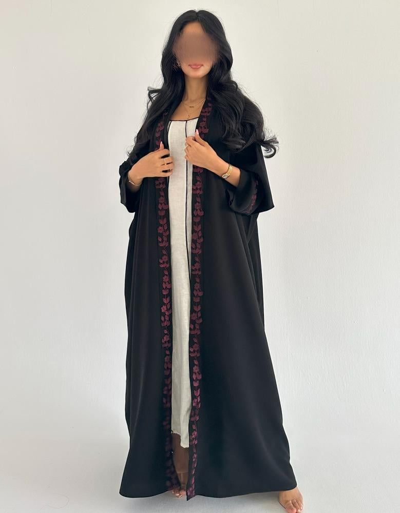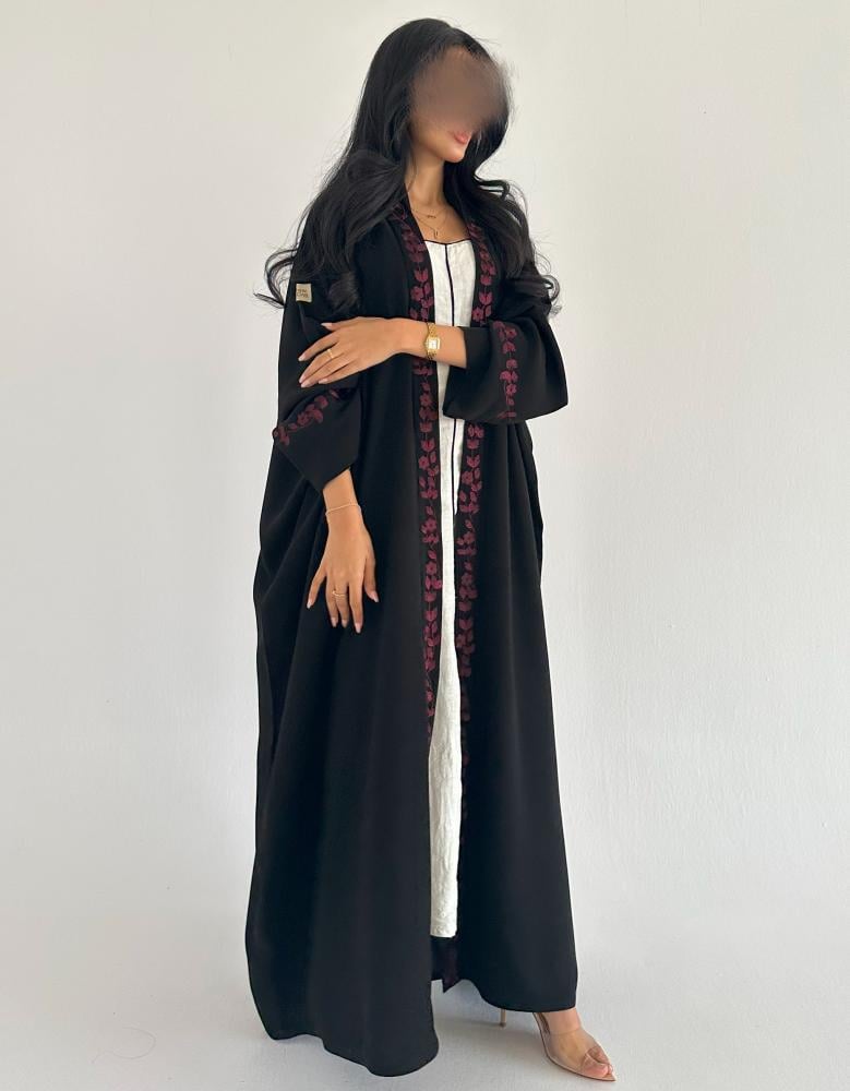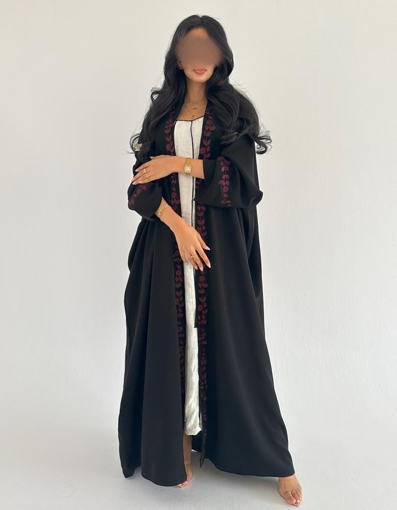 أضيفي لمسة ملكية فريدة لإطلالتك مع عباية كريب ملكي سوداء بتطريز بدرجات العنابي. بتصميم “ربع بشت” أنيق، تتميز هذه العباية الصيفية بتفاصيل ناعمة تمنحك فخامة فورية، وقماش خفيف ومريح مثالي لأجواء الصيف. اختيارك المثالي لإطلالة راقية تجمع بين البساطة والرقي